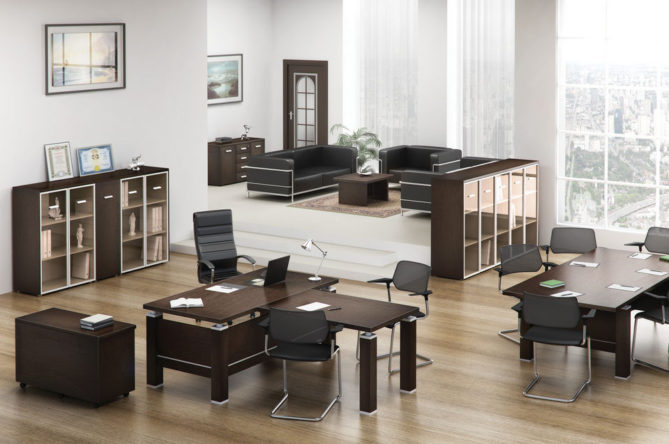Кабинет руководителя «Бонд» — яркий пример сочетания функциональности и минимализма. Эта коллекция основана на принципах лаконичности форм. Чёткость композиции, строгие геометрические формы и предельная простота оформления — вот главные отличия кабинета. Выразительность дизайна достигается за счёт контрастирующих цветов и материалов: тёплый цвет «венге» оттеняется вставками из алюминиевых/пластиковых деталей.