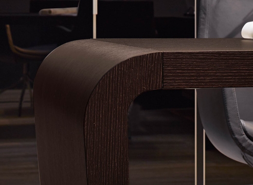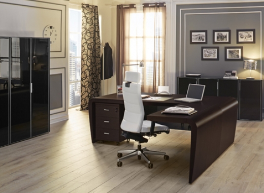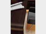 Оригинальный дизайн и пластичность форм выгодно отличают кабинет DALI. Массивная столешница письменного стола плавно переходит в опоры, зауженные к основанию. Шкаф представляет собой композицию из шкафа для бумаг (90см) и гардероба (60см+30см), под верхнюю одежду отведена бόльшая часть гардеробной секции. Стеклянные двери шкафов и греденций обрамлены в алюминиевую рамку и оснащены системой плавного закрывания. Стеклянные топы добавляют изюминку и лоск в общее восприятие кабинета DALI.Технические характеристики
