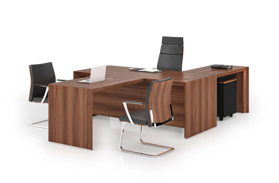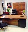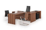 В коллекции предлагается четыре вида рабочих столов Удобные изящные стулья из черной кожи с деревянными спинками и хромированными деталями придадут рабочей зоне целостность и подчеркнут престиж компании. Высокие шкафы со стеклянными или деревянными дверками TECO+ привлекут внимание безупречным дизайном. Их боковые стенки, окрашенные в бархатный черный цвет, оттеняются насыщенным цветом и текстурой ореха.