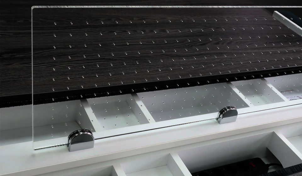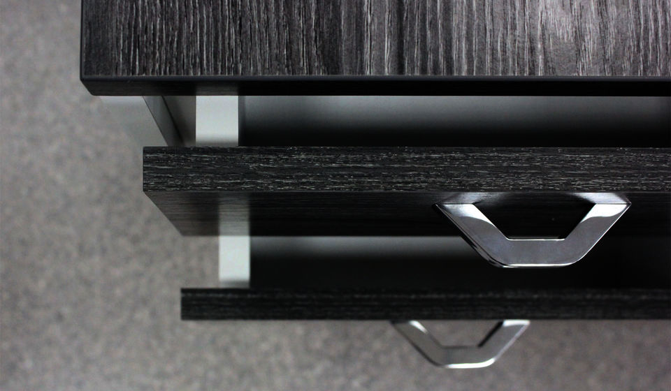 • Ящики в тумбах оснащены скрытыми шариковыми направляющими с бесшумным и мягким ходом.