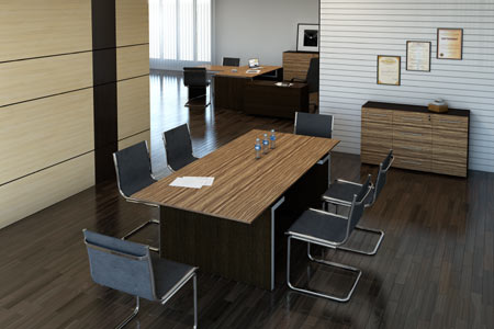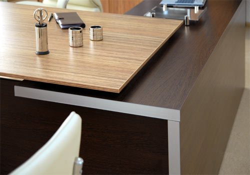 - «Венге» — кромочная лента цвета «Венге», 3D-акрил «Металлик» (опоры стола и брифинга);