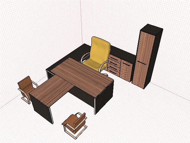 Столешницы, брифинг, каркасы тумб, декоративные панели шкафов, фасады тумб и шкафов имеют толщину 16 мм, каркасы шкафов — 18 мм, опоры стола, брифинга, журнального столика — 40 мм.